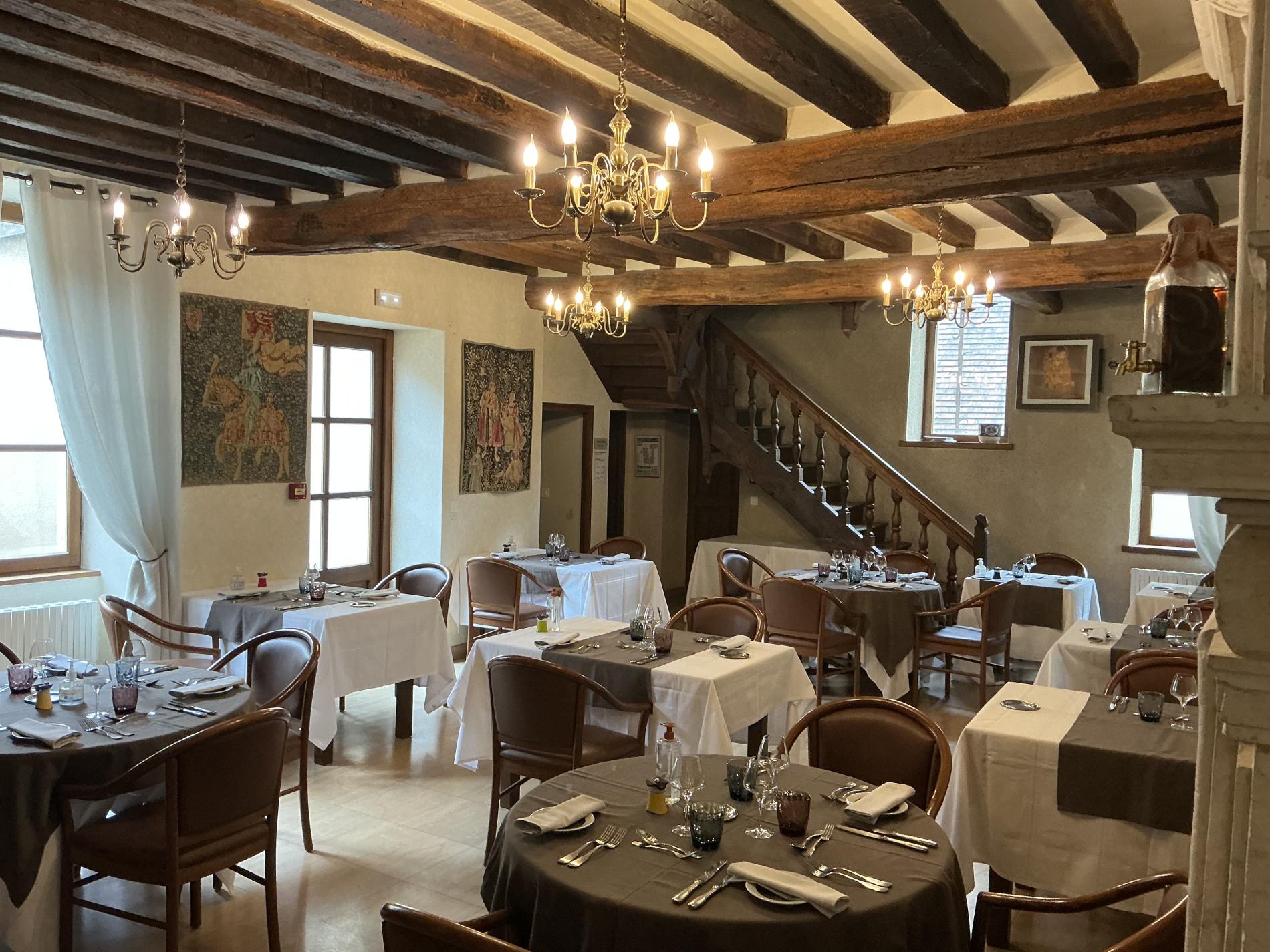 Served in a Renaissance style decor in the middle of which stands a beautiful 17th century fireplace, the patron's cooking is traditional, regional and gourmet. In fine weather, it can be appreciated outside in the pleasant inner courtyard.